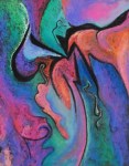 “Time Heals,” 14″ x 11″. I painted this in late 2020. So much seemed to be falling apart. I wanted to show possibility, the change from jagged and chaotic to graceful and curved. [$400 framed, plus tax and shipping]