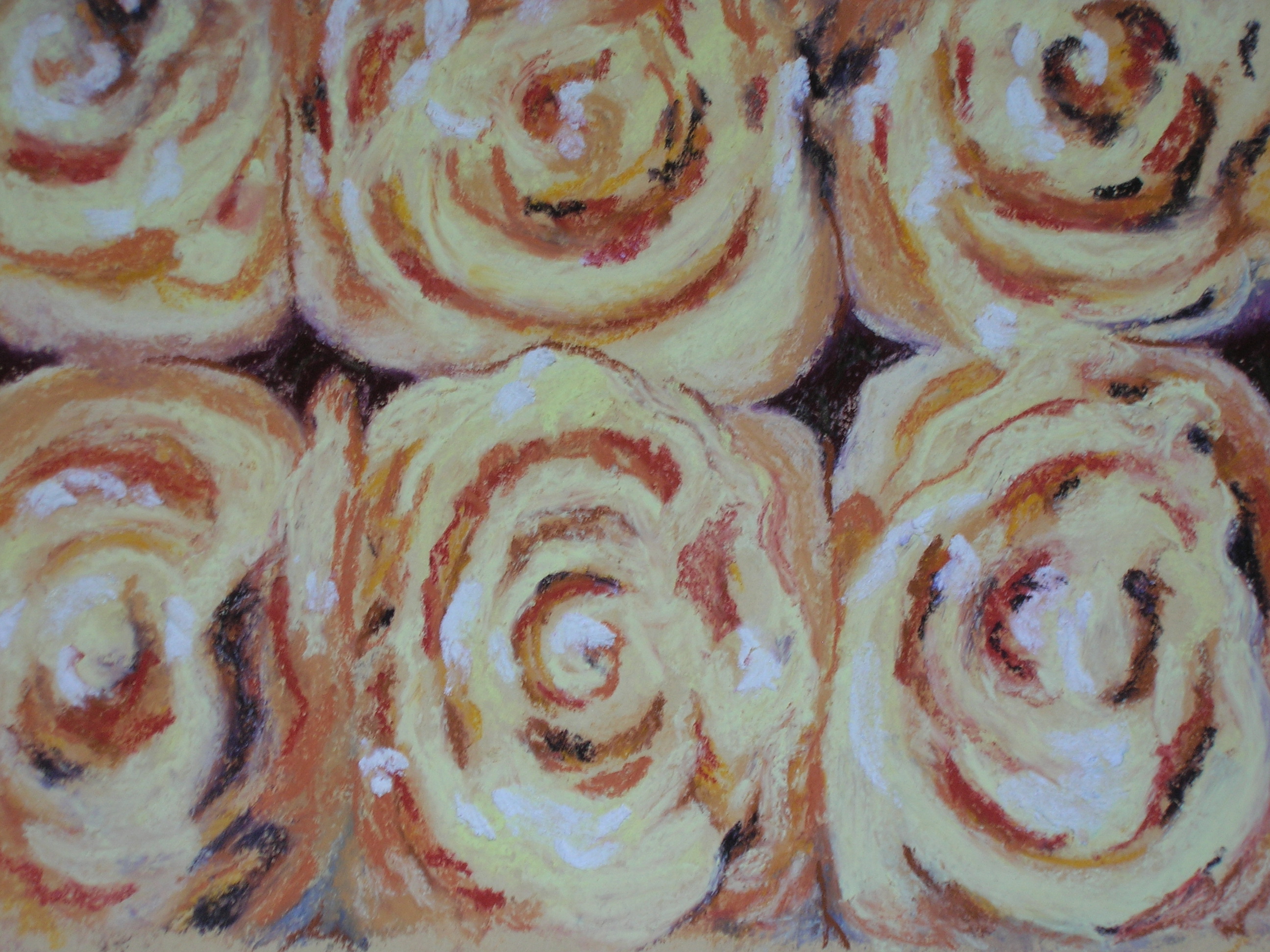You are sooo talented! I want to walk in every field you have painted, look at the skies from your vantage point, and definitely eat the cinnamon buns you painted. Oh, and that sail boat is inviting. I feel like I could jump in and just push off from the shore.