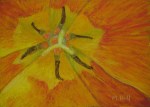 “Tulip 2,” 5″ x 7″. Into the center of a beautiful orange-yellow tulip.