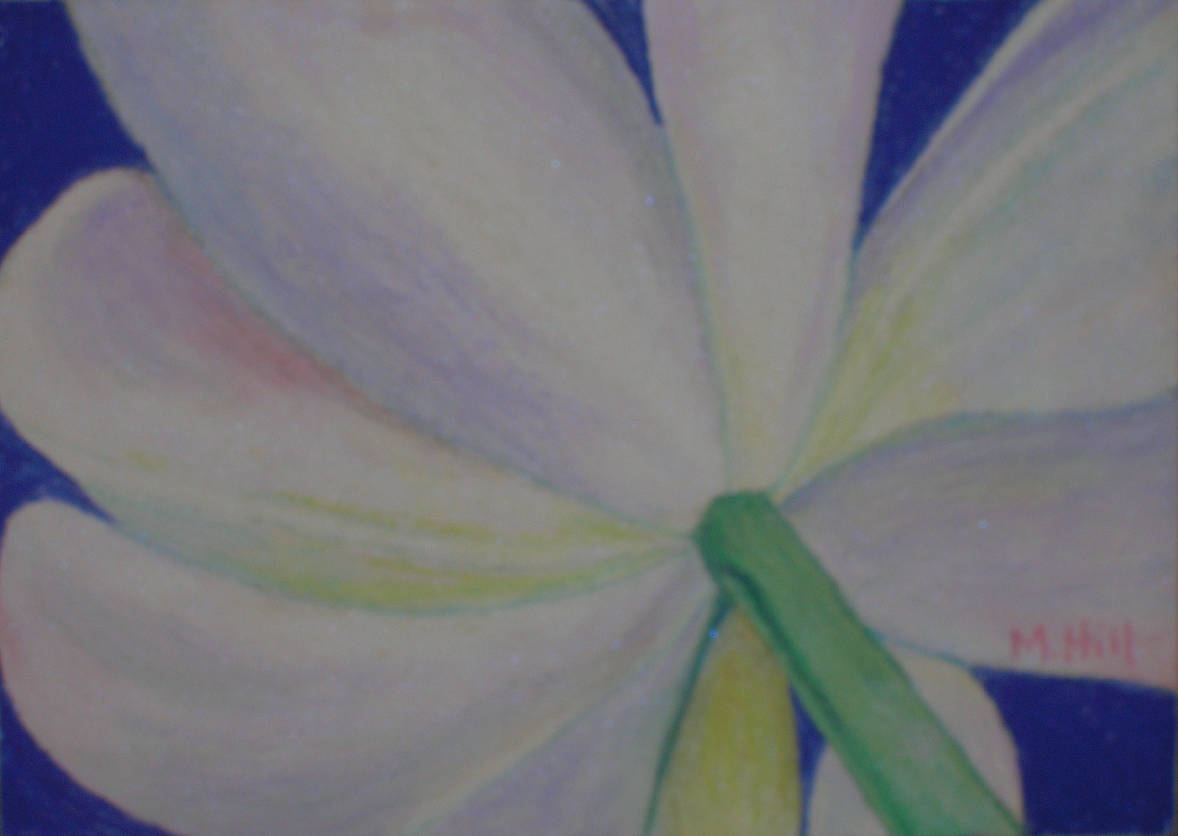 “Tulip 3,” 5″ x 7″. A tulip closeup from underneath! I like the contrast of the purple background.