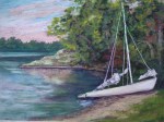“Rick’s Sailboat,” 9″ x 12.” I did this painting while on vacation this August (2011) at a friend’s lake house on Caspian Lake. I love the soft colors in the lake and sky in the early morning. I painted outside, and the lake and light change fast! This scene is sort of a compromise between how the lake looked when I started and how it looked when I finished the painting.
