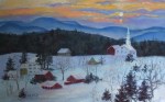 “Peacham Dusk,” 7 1/2″ x 12″. I don’t know what possessed me to paint a winter scene in the middle of June! Perhaps the tranquility of this small town in the soft light of dusk was just the rest I needed.