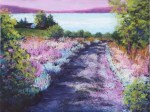 “Headed to Camp,” 11″ x 14″. This view is indeed on the was to camp on Caspian Lake. But, as you may have guessed, the sky and grass was not magenta. I like this version so much better than “reality”!