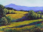 “What the Sunflowers See,” 18″ x 24″. This is from the same sunflower field as I painted from in “The Fire of Sunflowers.” The flowers are looking at the view! Although this has sold, I have a canvas print of this painting available. It is 12″ x 16″ and is priced at $75. Not quite original art, but the next best thing!