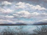 “Sky and Lake Conversation,” 16″ x 20″. This is Caspian Lake in northern Vermont. The conversation, as you see, is between the glorious sky and the gentle water, a conversation about light and color. This painting sold the first time I showed it, at the Wood Art Gallery in Montpelier, VT.